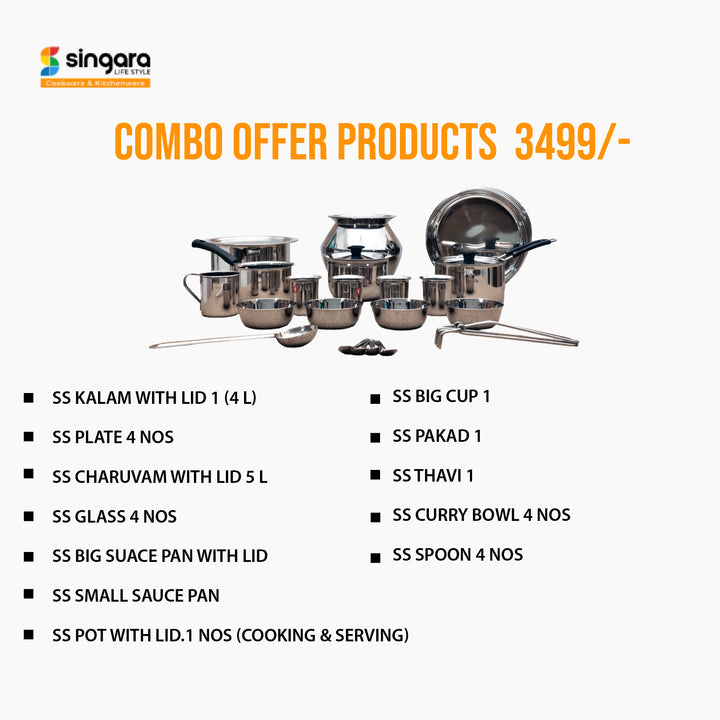 Celebrate Onam affordably with our 20-piece stainless steel cookware set for ₹3499. Includes Kalam, Plates, Sauce Pans, Curry Bowls, Spoons & more. Premium quality, 100% food safe & long-lasting shine.