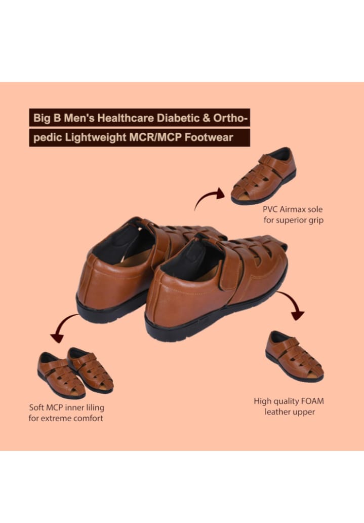 Big B Men's Healthcare Diabetic & Orthopedic Lightweight MCR/MCP Footwear - Sandals, Chappals & Slippers for Comfortable Support, Pain Relief, and All-Day Comfort for Diabetic & Foot Care Needs.(DARK BROWN, TAN , BLACK)
